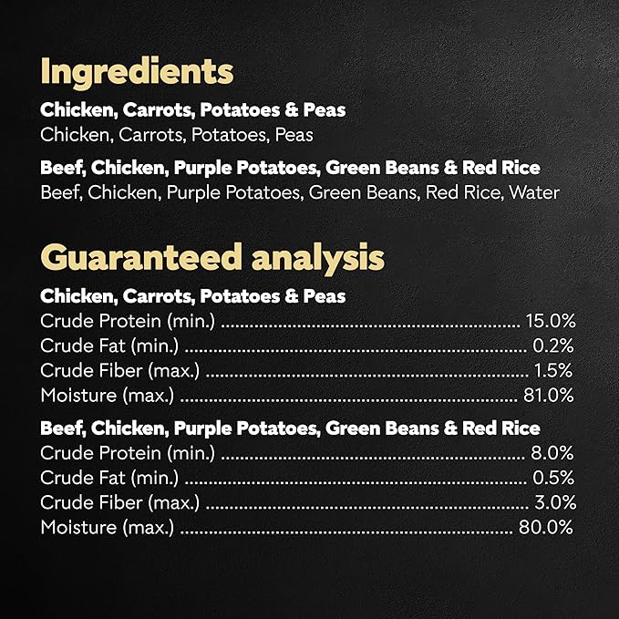 - Real Ingredients: Real chicken or beef is the #1 ingredient with real veggies