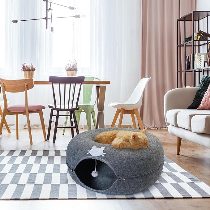 - CLEANED IN NO TIME - The detachable peekaboo cat cave makes it effortless to clean. Felt material is super durable and odor resistant! Simply use zipper to separate both sides and you can clean inside the cat tunnel.