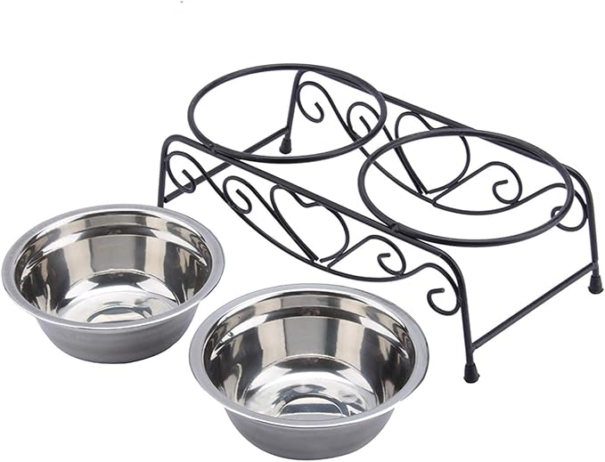 - 2 REMOVABLE BOWLS DESIGN AND EASY TO CLEAN: Two removable stainless steel bowls: Easy to Wash & Bring Convenience option for dog eating and drinking at same times.