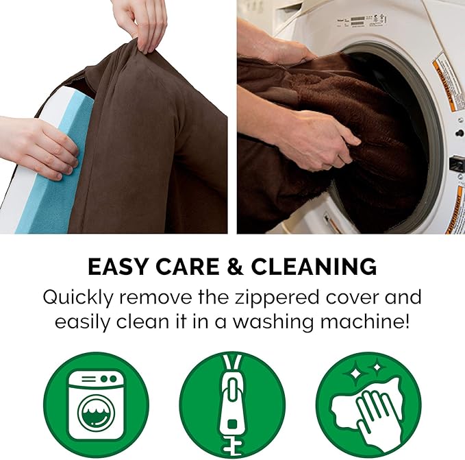 - Machine Washable Easy Care - The dog bed cover is completely machine washable and is easily removed with a two zipper design that allows access to the foam base and bolsters; for more specific care instructions, please refer to the hang tag and/or seam label.