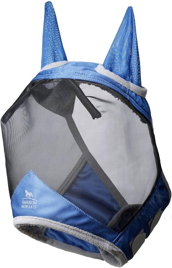 Harrison Howard CareMaster Pro Luminous Horse Fly Mask Large Eye Space Standard with Ears UV Protection for Horse Royal Blue Full Size