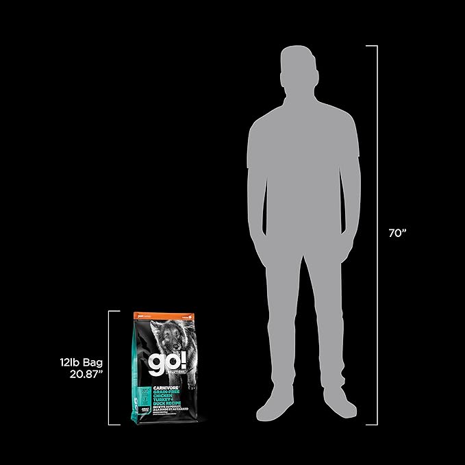 Go! Solutions Carnivore, Grain-Free, Protein Rich Dry Dog Food, Chicken, Turkey and Duck Adult Recipe, 12 lb Bag