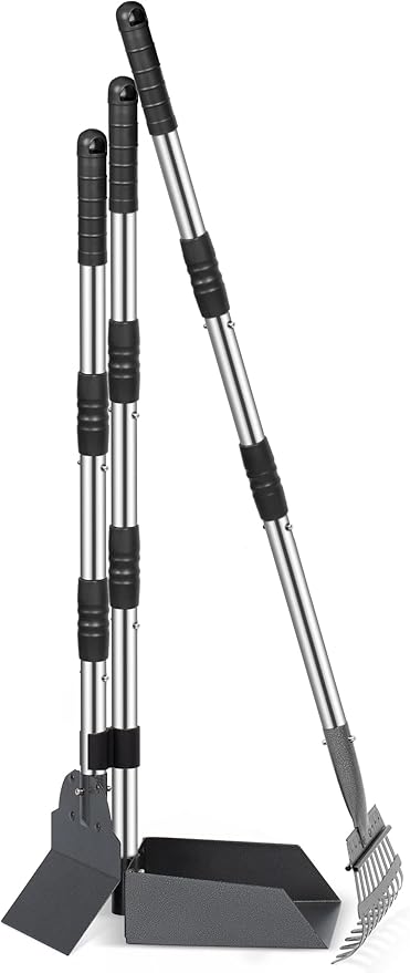 Heeyoo Dog Pooper Scooper, Dog Poop Tray and Rake Set, Pet Waste Removal Scoop with Long Adjustable Sectional Stainless Handles