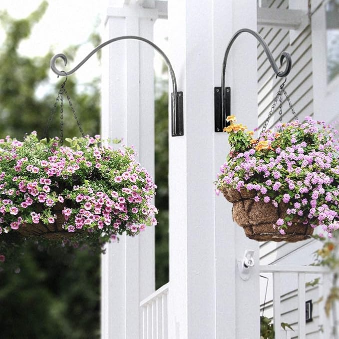 - HEAVY DUTY DESIGN: Our hanging plant bracket are made of heavy duty steel, this large wall mount plant hook can easily hang up to 40 lbs for flower baskets, wind chimes and more, ensuring stability and safety for your baskets and items.