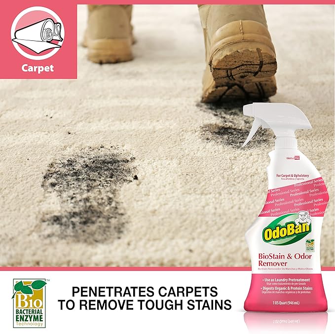 OdoBan Professional Cleaning and Odor Control Solutions, Ready-to-Use Biostain and Odor Remover, Made in the USA, 32 oz Spray Bottle and 1 Gallon