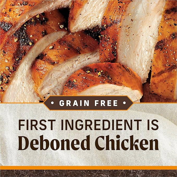 - Real deboned chicken is always the first ingredient in this premium grain free kibble, made with real food ingredients to deliver balanced nutrition for adult dogs