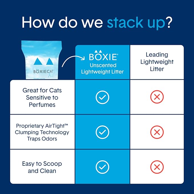 - VETERINARIAN APPROVED: No cheap fillers, artificial fragrances, harsh chemicals or preservatives in Boxie litter formulas, so you aren't bringing necessary toxins into your home.