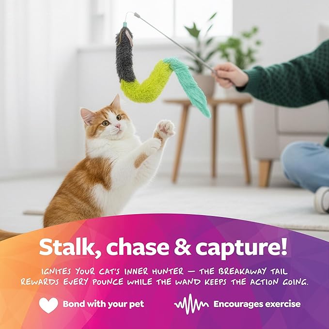 - Ultimate Hunting Satisfaction: This toy activates your cat's instinct to chase and pounce. The plush tail breaks away into three parts, giving your cat the ultimate satisfaction that they captured their prey!