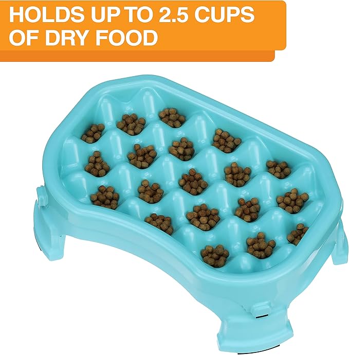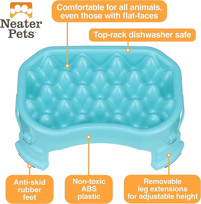 Neater Pet Brands – Neater Raised Slow Feeder Dog Bowl – Elevated and Adjustable Food Height - (2.5 Cup, Aquamarine)