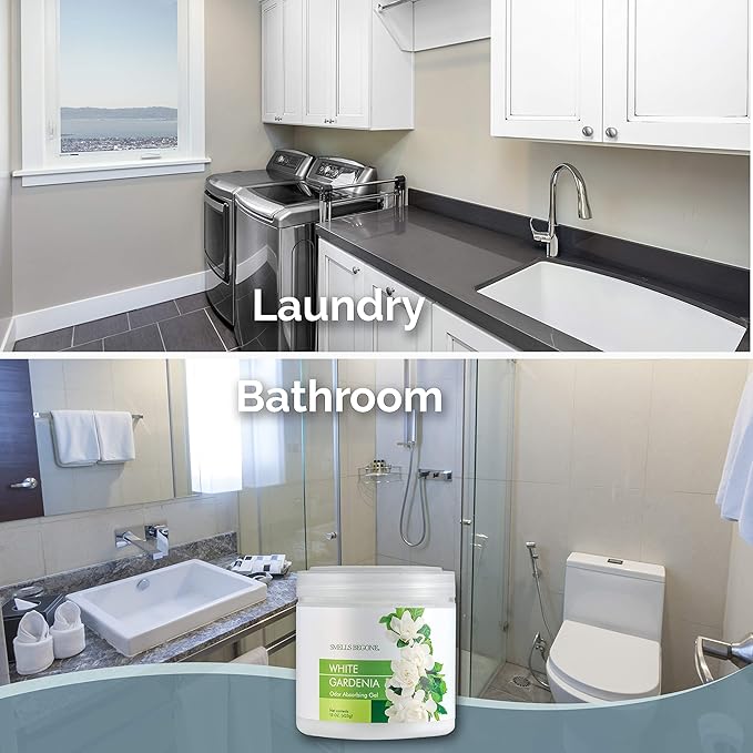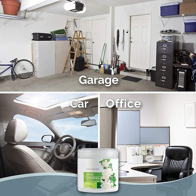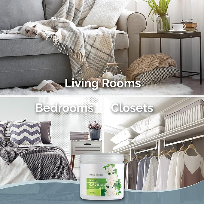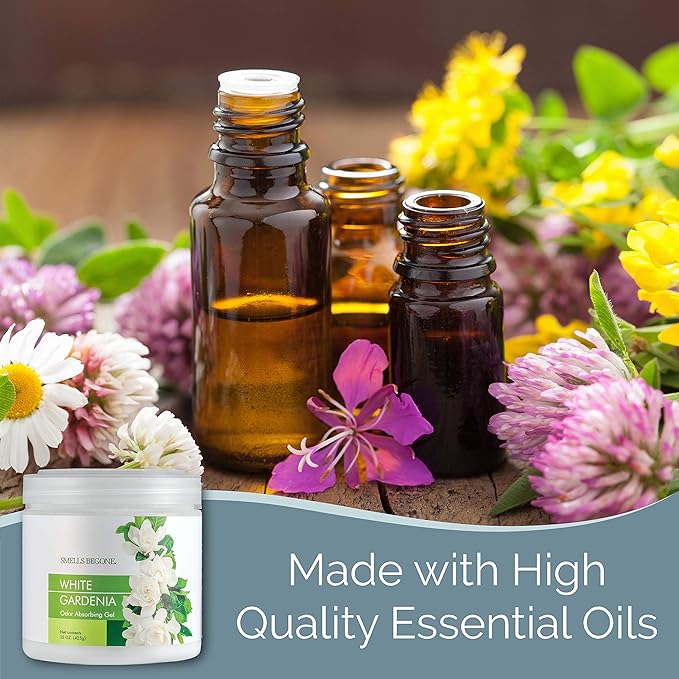 SMELLS BEGONE Air Freshener Odor Absorber Gel - 15 oz, Pack of 2 - Absorbs and Eliminates Odor in Pet Areas, Bathrooms, Cars, & Boats - Made with Essential Oils - White Gardenia Scent