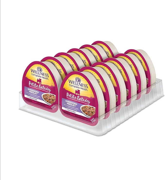 Wellness Petite Entrées Shredded Medley with Roasted Chicken, Duck, Peas & Carrots, 3-Ounce Cup (Pack of 12)