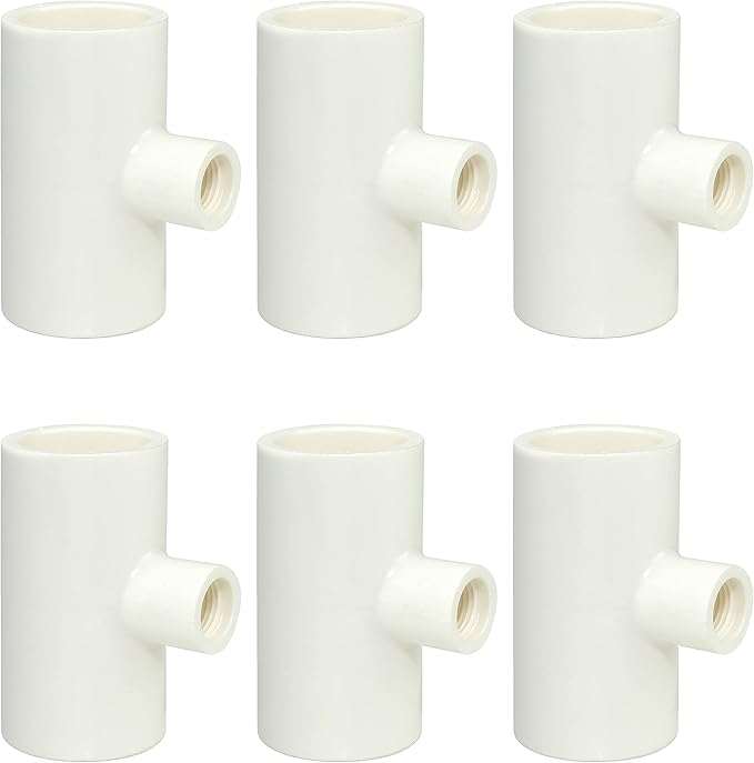 (6 Pack) Chicken Waterer PVC Tee Fittings For Threaded Poultry Watering Cups - Schedule 40 PVC 1/2 inch Slip X 1/2 inch Slip X 1/8 inch FPT