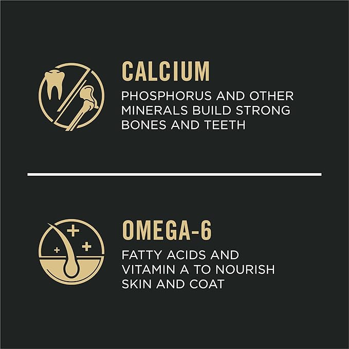 - Vitamin A and omega-6 fatty acids to nourish skin and coat