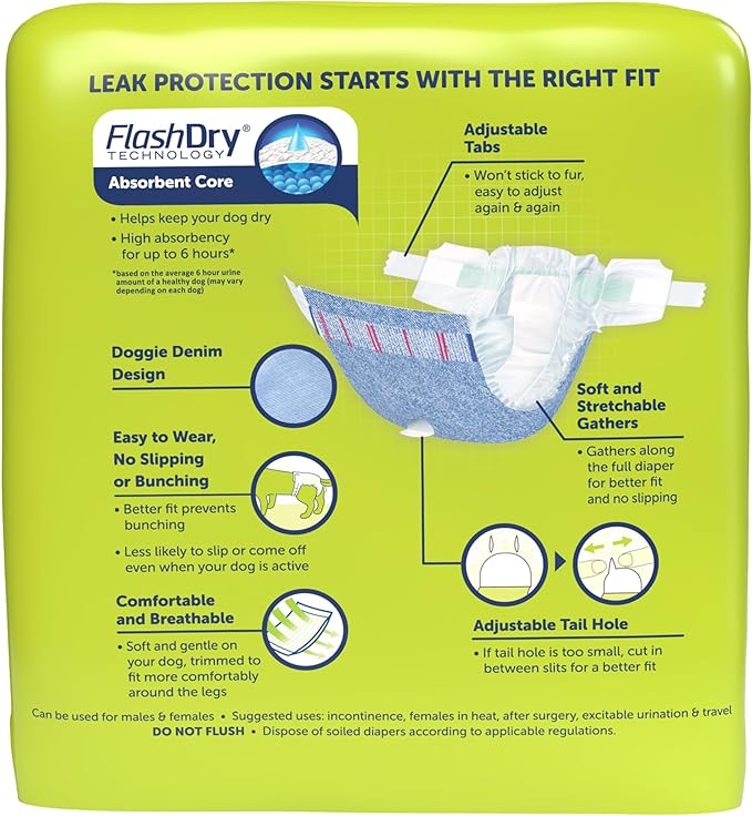 - 6-HOUR LEAK PROTECTION: The highly absorbent core utilizes FlashDry technology, which instantly turns urine into GEL for the ultimate leak-proof potty solution and helps keep your dog comfortable and dry.