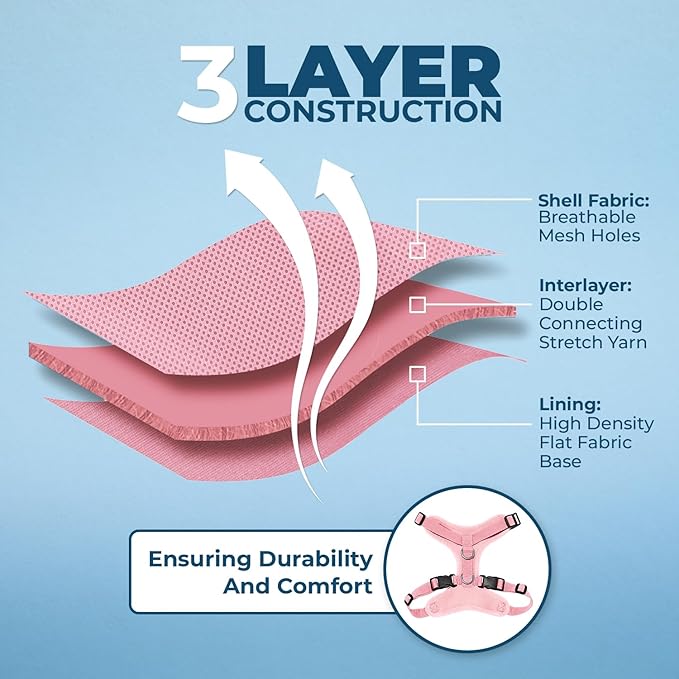- ALL WEATHER AIR MESH: Made a soft, breathable air mesh, this fully adjustable and lightweight pet harness is perfect for walks all year round