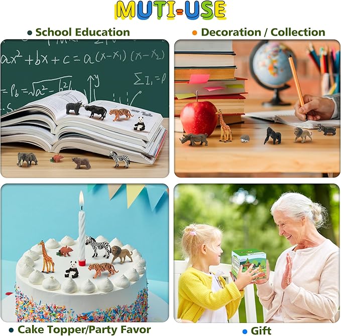 - ✔ AWESOME SAFARI ANIMAL CAKE TOPPER - There are many mini zoo animals, it would be a good idea to use them as the cake toppers and make a safari animals-themed cake for your kids. Such cute & different varieties of animal figures are worth to be collected, decorating children's bookcase, desk and room. It's an awesome birthday gift or prize for kids, they would love that so much.