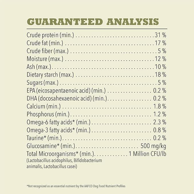 - High protein dog food kibble made in the USA with quality ingredients from around the world