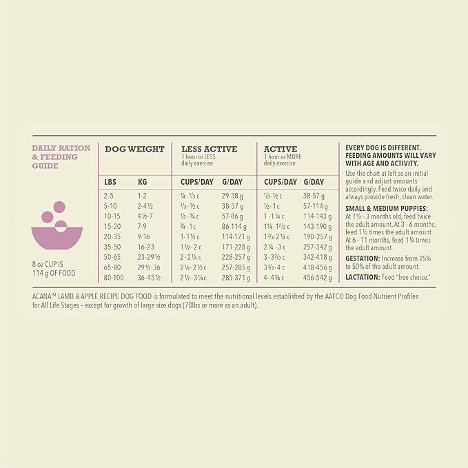- One (1) 13 lb bag of ACANA Singles Limited Ingredient Lamb & Apple Recipe Dry Dog Food