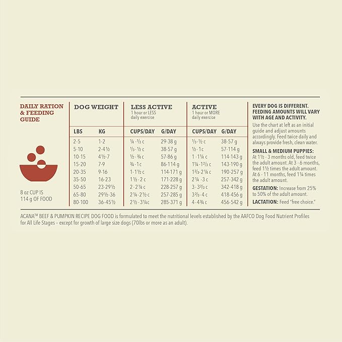 - One (1) 4.5 lb bag of ACANA Singles Limited Ingredient Beef and Pumpkin Dry Dog Food
