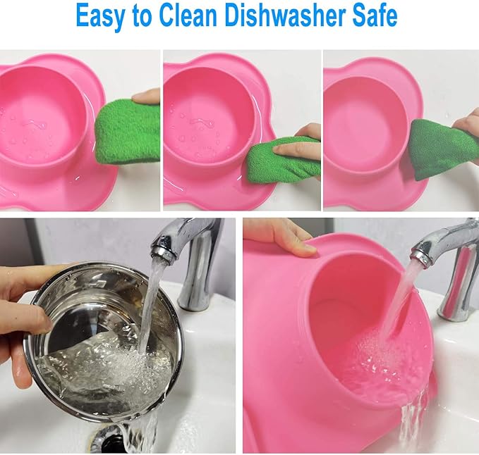 - ๐ถDouble Dog & Cat Bowls: Set of 2 Dog & Cat Bowls, one for water and the other for food. The bowls is made of high quality stainless steel which makes it rust resistant. Both silicone stand and stainless steel bowl are dishwasher safe.