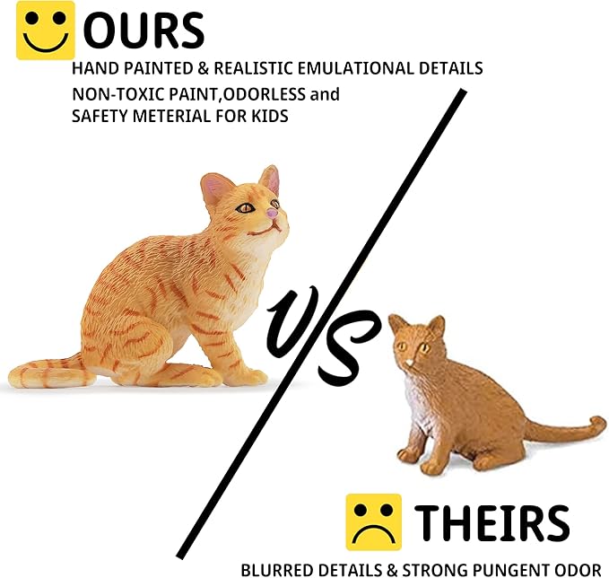 - ✔ EDUCATIONAL CAT TOY PLAYSET - These were great for education purposes, creative play, party favors, school projects, baby shower and crafts. It will help to improve children's concentration and outsight, develop and train their imagination and creativity. Parents can tell the children stories about the information of the animals or the happy life of the animal family, it will improve the parent-child relationship.