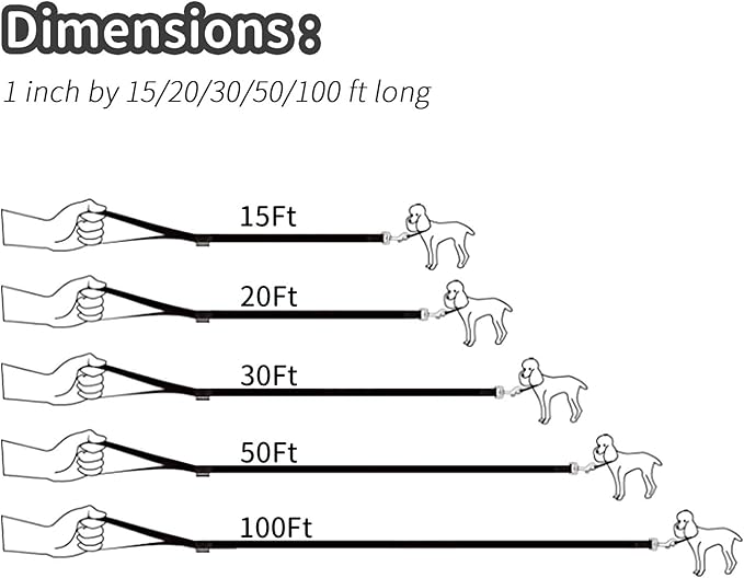 HIKISS Long Dog Leash Obedience Recall Training Agility Lead with Thickening Material for Large Dog - 15ft 20ft 30ft 50ft 100ft Training Leash (Black 20ft)