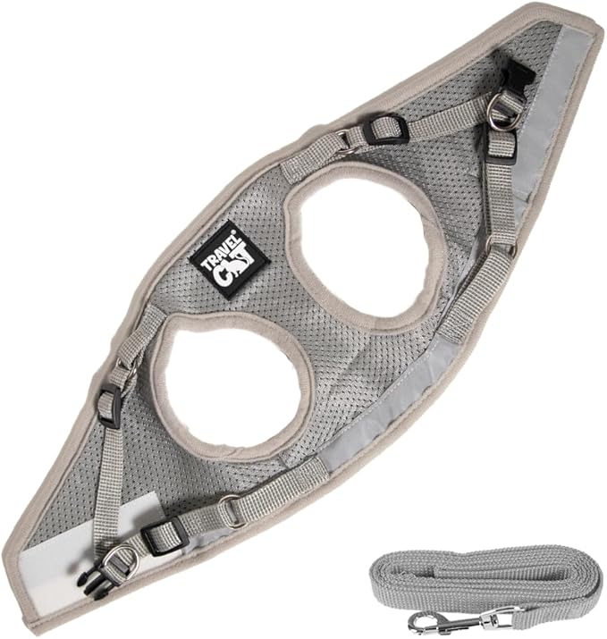Travel Cat Harness and Leash Set - Adjustable Fit Mesh Cat Harness and Reflective Strap - Comfort Walking Vest for Kitten for Outdoor Walking, Hiking (Large, Grey)