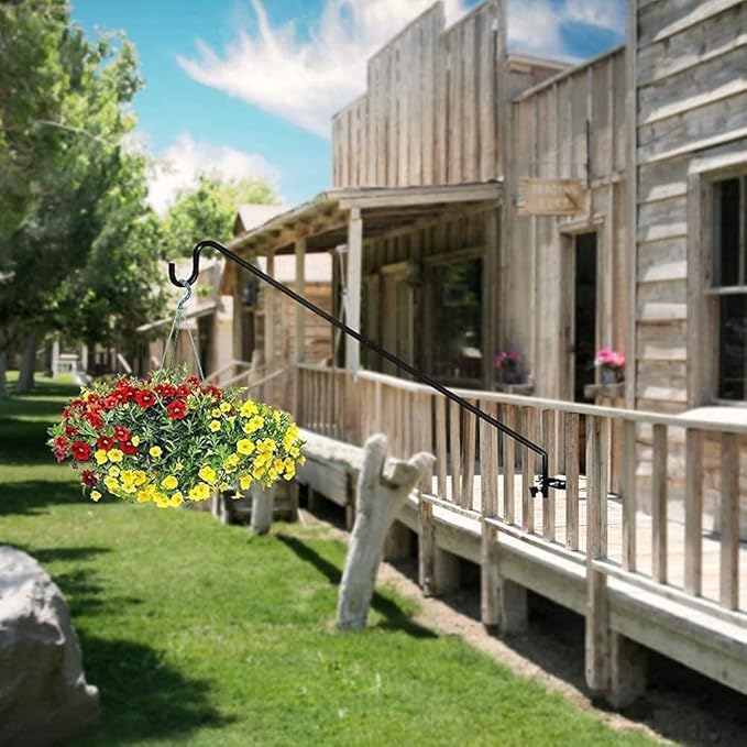 - 【Premium Quality】Our this fence deck hook is made of heavy duty steel.Weather proof black powder coated. A dark finish stunningly complements anything that hangs from it, adding elegance and beauty to your outdoor living space. Solid bracket and curved rod tip helps securely hold items