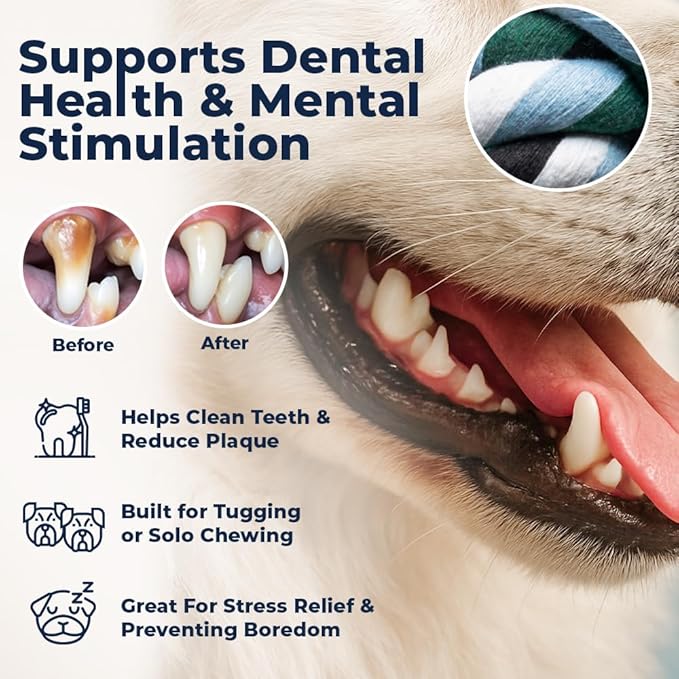 - Poop Bag Rolls Inside - Roll of Custom Poop Bags with Funny Dog Sayings on Dog Poop Bags. This XL Dog Rope Toy Is Strong And Tough - Designed For Extra Large Dogs, Large dogs, And Giant Dogs Toys. This Dog Toy For Giant Dog Breeds Is Great For Tug-Of-War. Durable Dog Rope Toys is Suited To Curb Boredom , And For Bonding With Your Pet. Much More Durable Dog Toy Than An Antler Or Flossy Chew Toy For Dogs