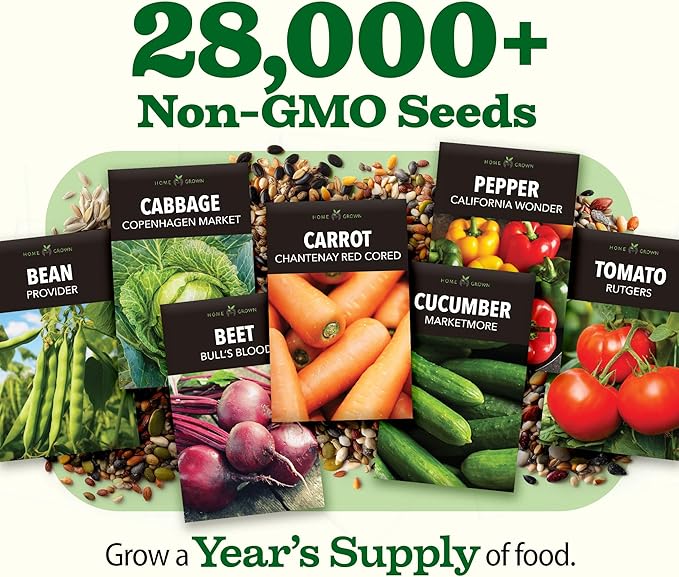 HOME GROWN π¨π¦π π£π₯ππ ππ¨π 55 Vegetable Seeds Pack 28,000+ Non-GMO Heirloom Seeds for Planting, Spring Fall Winter Garden Kit, Survival Seed Vault for Preppers & Gardeners, Gift for Men & Women
