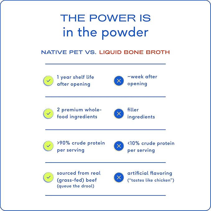 - Clean, Simple Ingredients: Native Pet takes pride in using only the best human-grade, organic beef and chicken bone broth, free from fillers, additives, and preservatives, ensuring a safe and wholesome addition to your pet's diet.