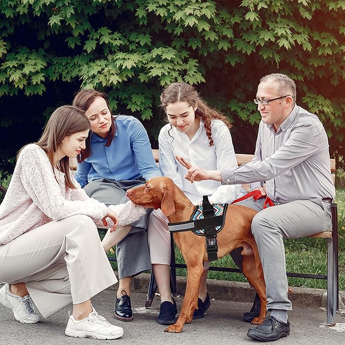 Dogline Dog Harness, Reflective No-Pull Adjustable Vest with Handle for Walking, Training, Breathable, No - Choke Harness for Small, Medium or Large Dogs Room for Patches Aztec Design 2 L 27"-34"