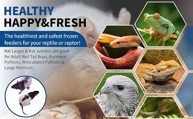 - Our commitment; if you and your pet don’t love your frozen pack of 4 rat larges and 4 rat jumbos snake food, simply contact us and we’ll make it right