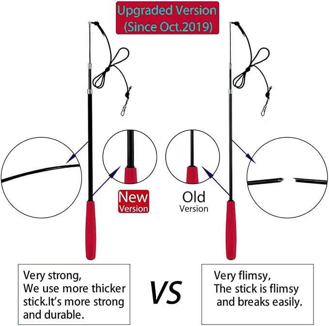 - Great Value--1 Cat wands,5 Worms,3 Packs Cat Feathers 1 Pack Butterfly and 1Pack Octopus.(Provide endless of fun) Durable & Retractable Cat Wand.The wand is made of high carbon fiber which makes it more durable and more flexible.The Rod can extend to 4 periarticular for teasing
