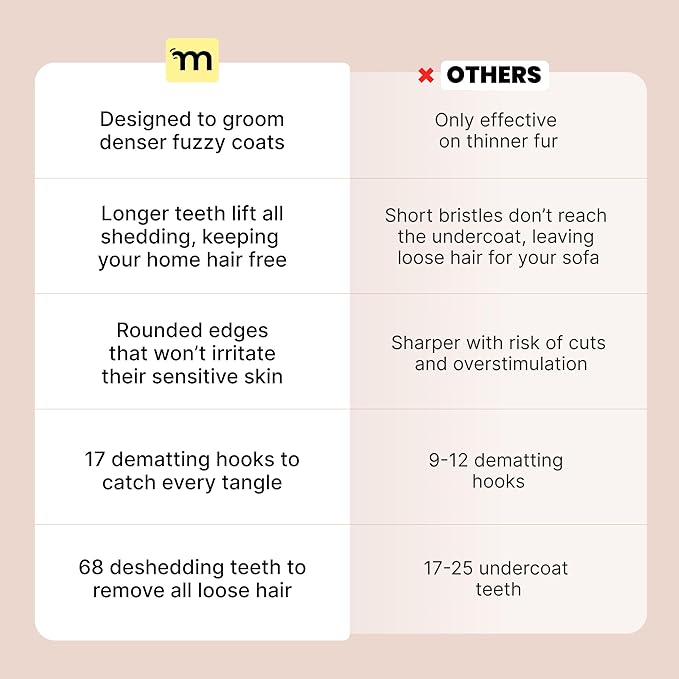 - Magic Undercoat Care: Conquer your pet's undercoat with ease using the undercoat rake. This cat dematting comb loosens tangles and knots effortlessly, making it ideal for long-haired cats with double coats. A vital cat grooming tool for any grooming kit