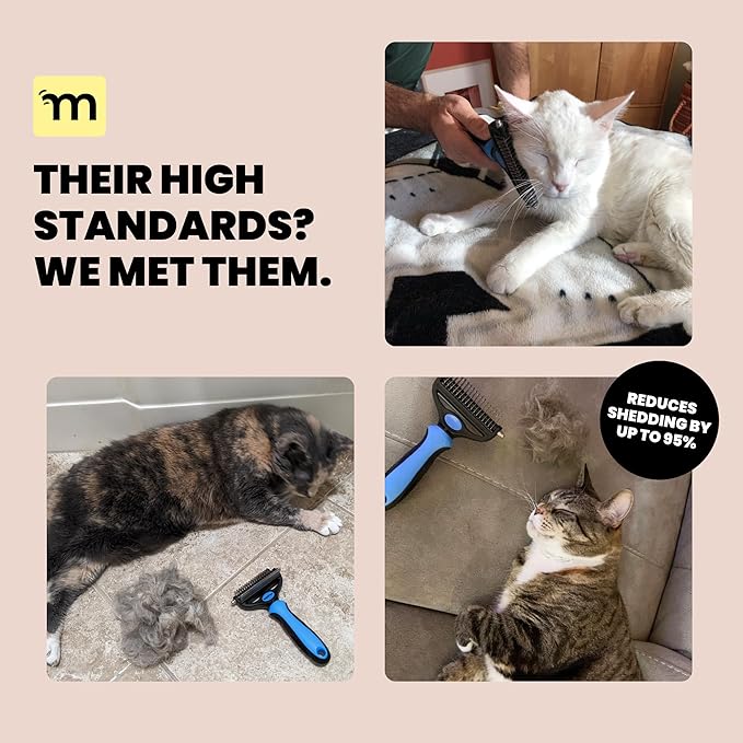 - Easy Coat Control: The MalsiPree Pet Grooming Brush with its dual-sided deshedding rake and dematting comb reduces shedding by up to 95%, keeping your cats's coat sleek and healthy. This cat shedding brush and cat dematting tool is a must-have for cats with dense double-coats