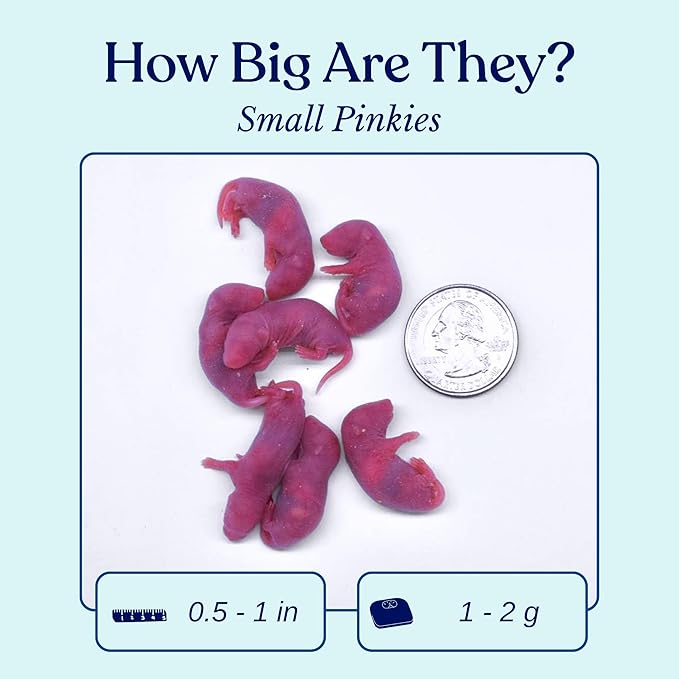 - Arrives frozen: MiceDirect frozen Small Pinky for snakes are packaged in dry ice so that they arrive fresh, cold and intact. Don’t risk inferior, lab-surplus or imported feeder mice from China for snakes and reptiles, your pet deserves the very best from MiceDirect.