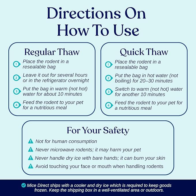 - Direct to you: MiceDirect cuts out the middleman, our frozen Mice Small Pinkies arrive at your door directly from the farm.