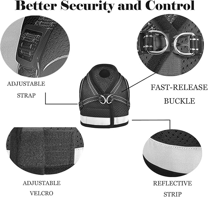 - 【Small dog harness】Machine washable. Mesh material allows for easy cleaning and quick air dry, saving you time and hassle. Please contact with any questions or concerns us.