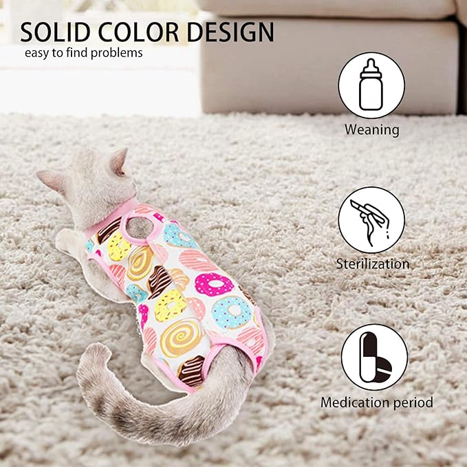 Cat Professional Surgical Recovery Suit,E-Collar Alternative for Cats Dogs,After Surgery Wear, Pajama Suit,Home Indoor Pets Clothing Doughnut L