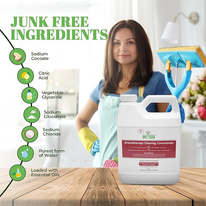 - What’s Included: This 32 oz bottle of Naeterra Aromatherapy Cleaning Concentrate makes up to 12 gallons of multi-surface cleaner. Spray bottles sold separately. Use with your own reusable bottle for an eco-conscious clean.