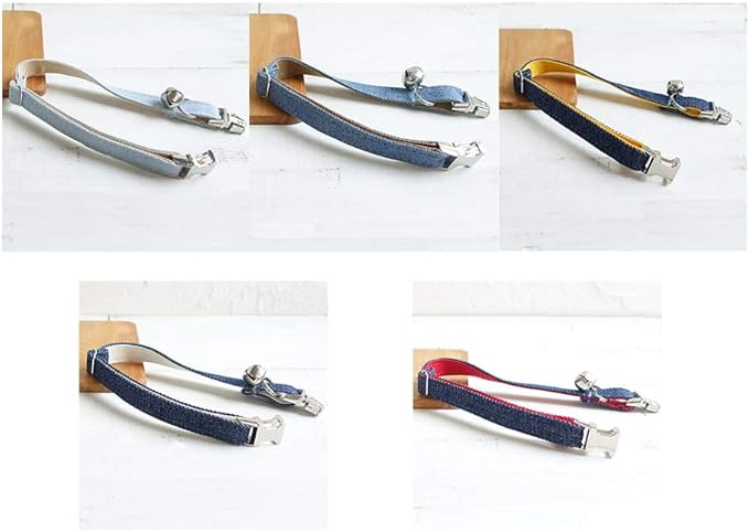 Personalized Cat Collar with Name Plate,Adjustable Tough Nylon Cat ID Collars with Bell,Customize Engraved Pet Name and Phone Number (Jean Style)