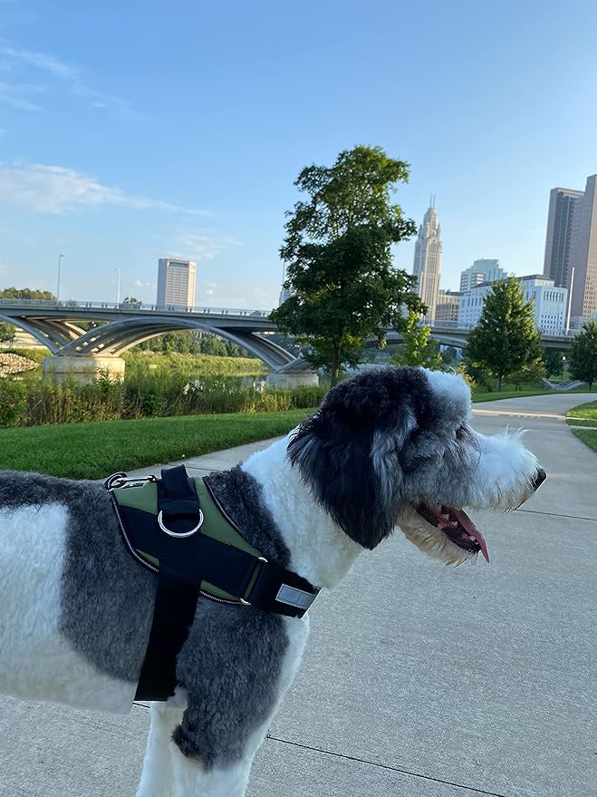 ShawnCo Essential Dog Harness, No-Pull Pet Vest with 3 Leash Clips, No Choke, Reflective, Adjustable and Padded, for Easy Walking and Training for Small, Medium and Large Dogs (Olive Green, XL)