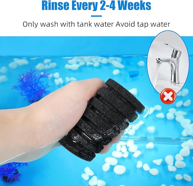 - Easy to set up & clean: simply install an airline into the unit and turn on the air pump, simply rinse and squeeze sponge in tank water