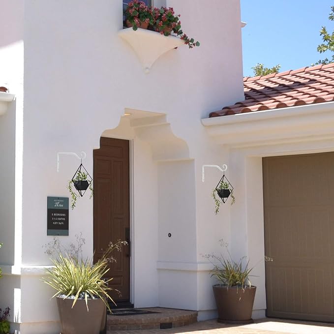 Jardim 2 Pack 6 Inch Premium Decorative Metal Iron Wall Hook, Indoor Outdoor Plant Hanger, Rustic Hanging Gardening Bracket Hook, for Planters, Bird Feeders, Lanterns, Wind Chimes (White)