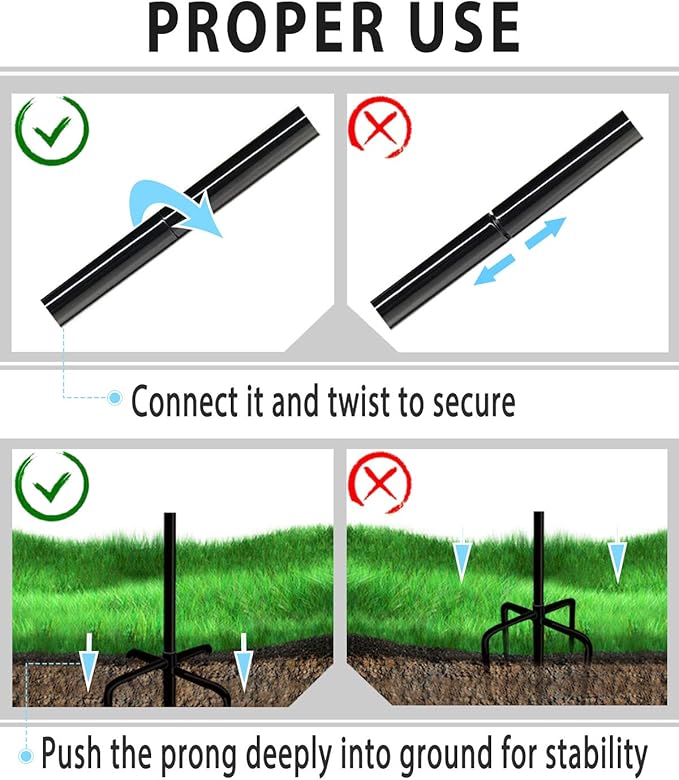 - 5 Prongs Adds Stability: Our outside planter hanging stands are made from 3/5 inch width & 2mm thickened heavy duty steel pipe, the metal stake base design with 5 double-forked base prongs, which is more stability than normal 2 or 3 prongs station kit and permits easy placement.