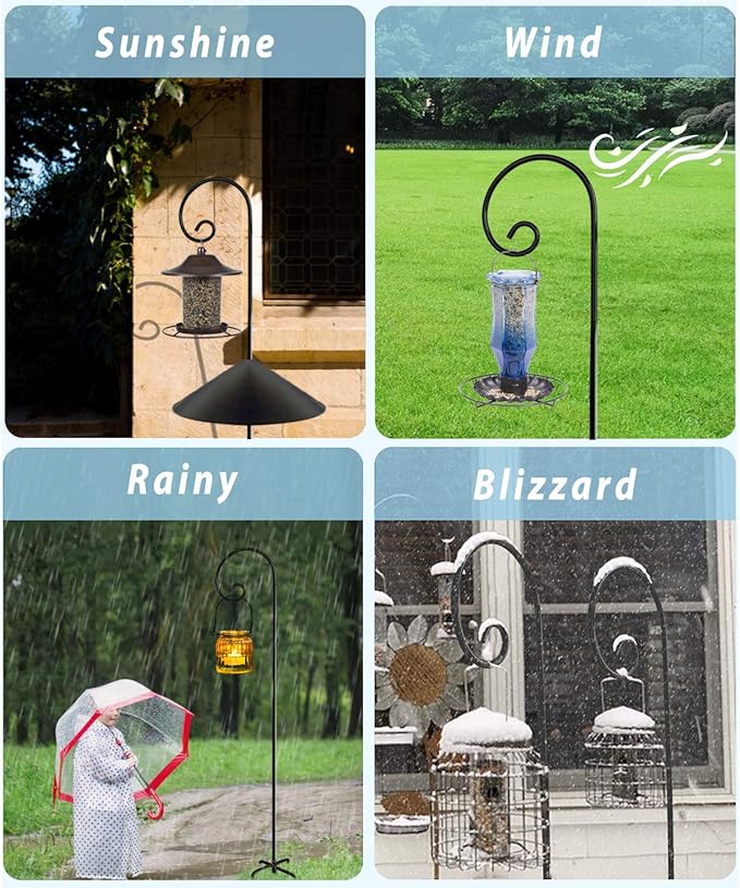 - High Quality Construction: The heavy duty shepherd’s hanger processes with black lacquer powder coating which is rust-free, water-tightness, durable last for years. At the same time, the inside curved hook outstanding shiny appearance design brings elegance and beauty to your courtyard, which is a rare boutique suitable for all kinds of home and garden style.