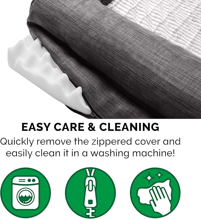 - EASY ON JOINTS: The egg crate orthopedic foam base helps cushion pressure points and improve air circulation, while fluff-filled bolsters support the neck, back, hips, and joints; helps ease discomfort and promote restful sleep
