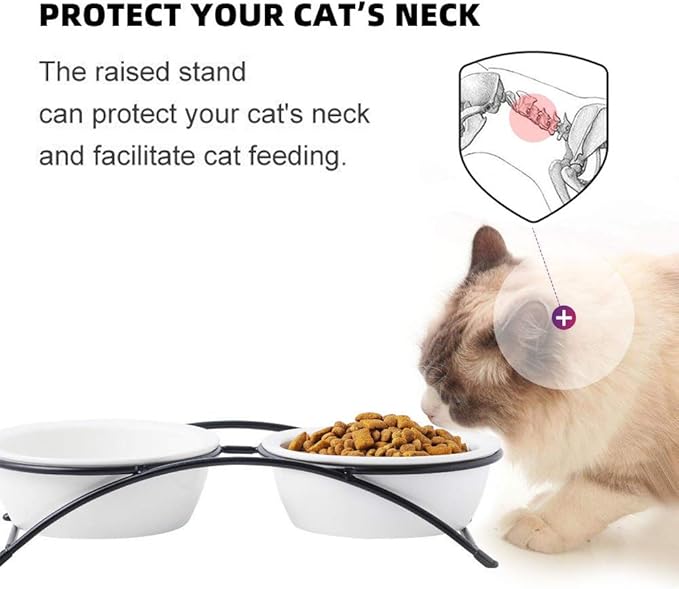 - Comfortable Dining Height: Slightly elevated to reduce neck strain, this design makes meals easier to swallow, promoting better digestion for your cat’s comfort and health.