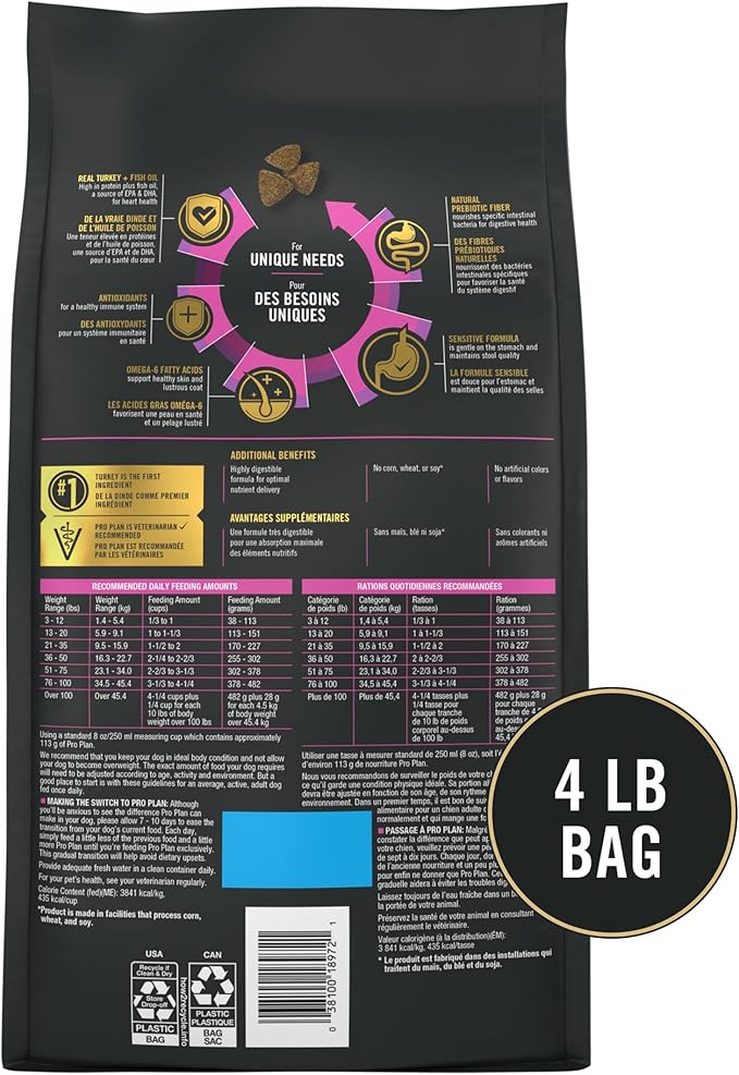 Purina Pro Plan Sensitive Skin and Stomach Dry Dog Food Turkey and Oat Meal - 4 lb. Bag